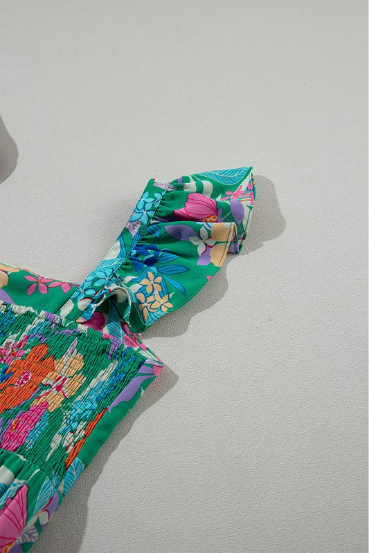 Boho Floral Ruffle Sleeveless Tiered Maxi Dress