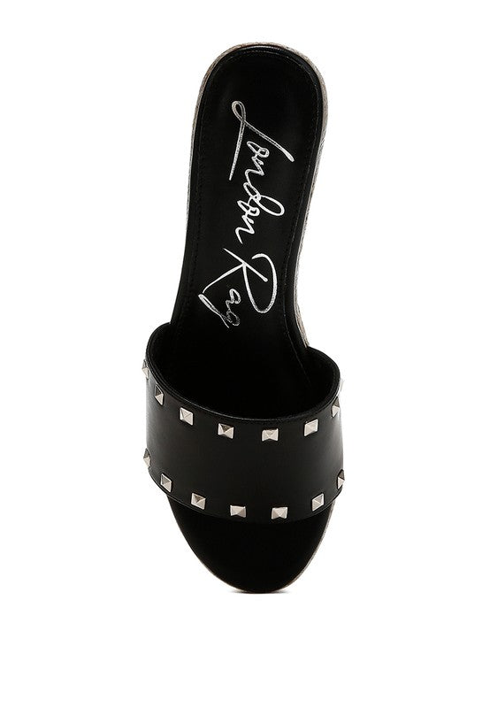 Redefining the espadrilles aesthetic with the metallic touch which adds an intriguing visual element. The stud embellishments also add an edgy element which makes the footwear standout. The espadrilles wedge sandals are perfect for summer beach parties!