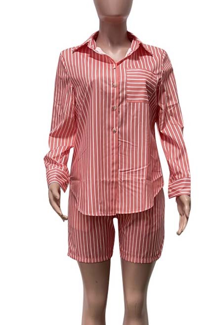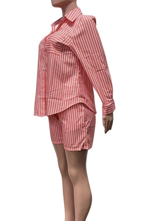 Sexy 2pcs set, long sleeves, front button, elasticized waist short