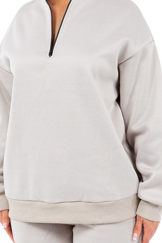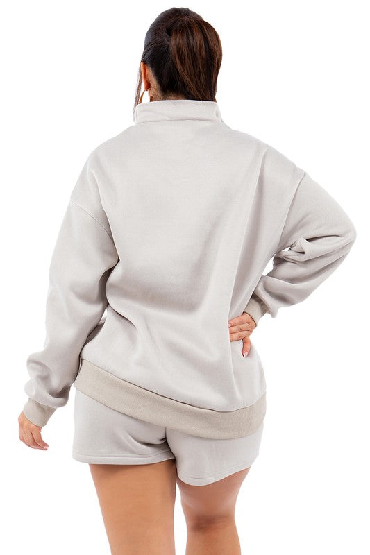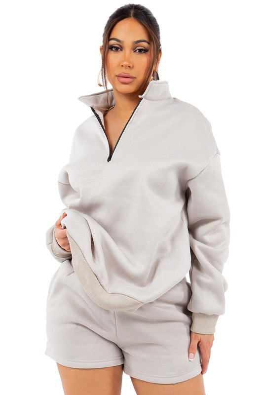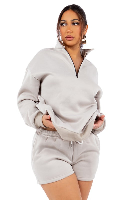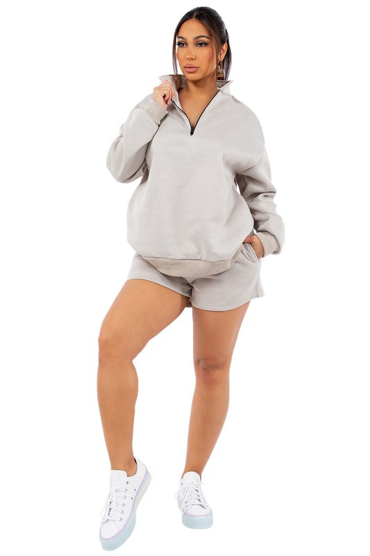 Sexy 2pcs set, round neckline front zipper up, long sleeves, elasticized waist short side pocket