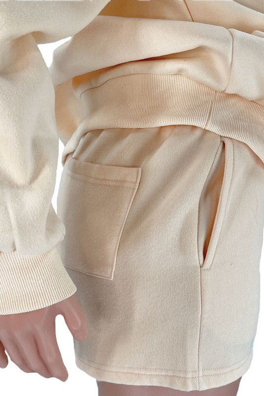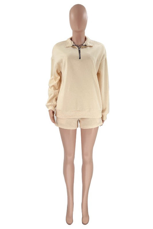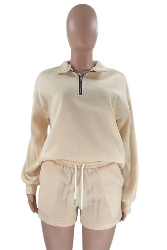 Sexy 2pcs set, round neckline front zipper up, long sleeves, elasticized waist short side pocket