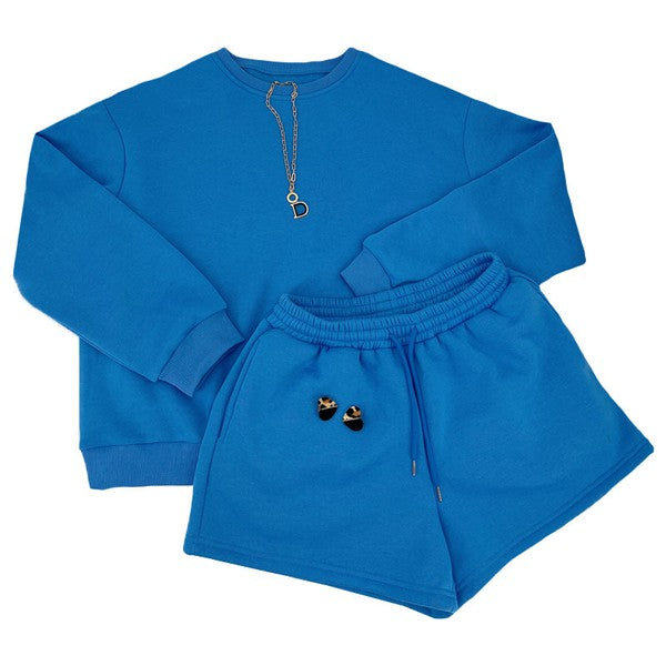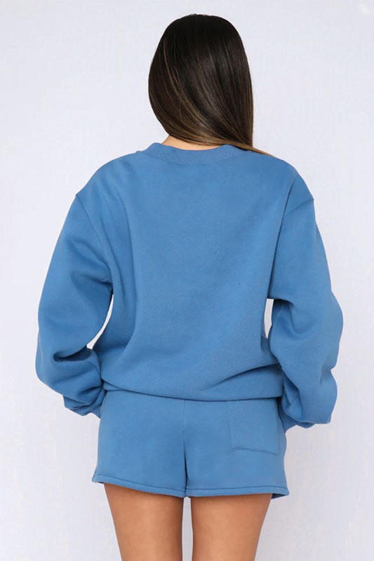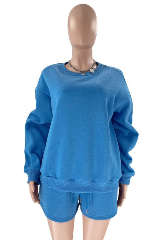 Sexy 2pcs set, round neckline, long sleeves, elasticized waist short