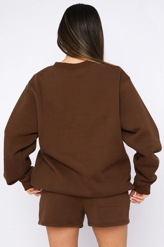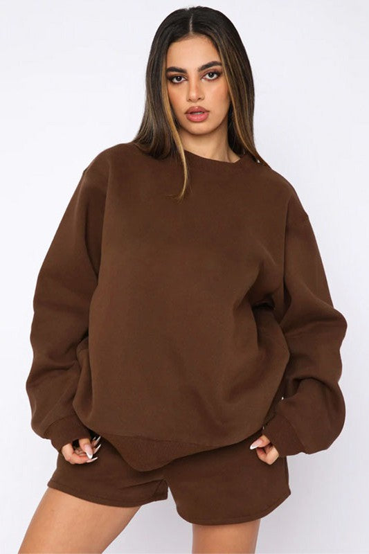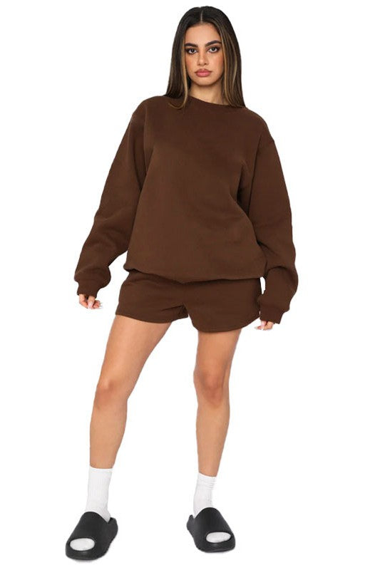 Sexy 2pcs set, round neckline, long sleeves, elasticized waist short