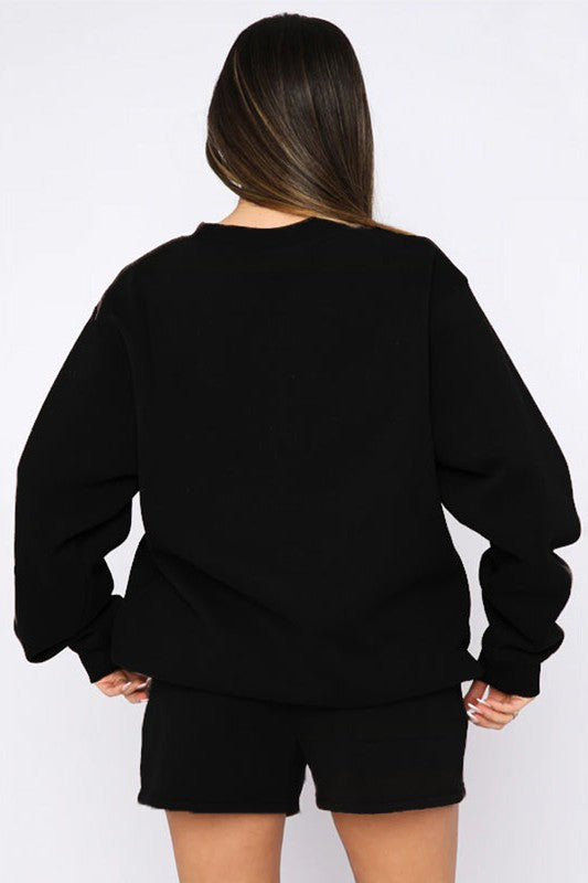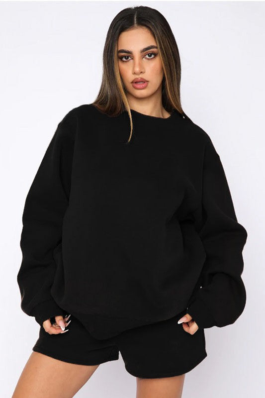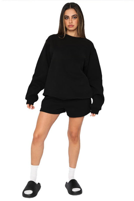 Sexy 2pcs set, round neckline, long sleeves, elasticized waist short